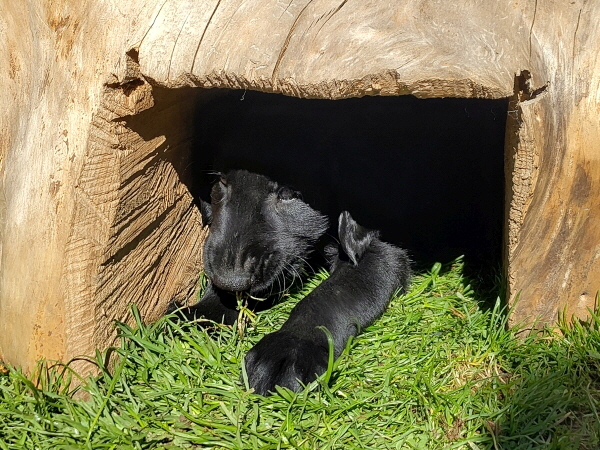 Ivy nimmt nun ihre Mutterrolle sehr ernst. Eigentlich wollte sie garnicht von den Kleinen weg. Ab Tag 4 nahm sie sich aber ein klein wenig Zeit um mal durch den Garten zu streifen oder sich außerhalb der Wurfbox auszuruhen - sehr toll!
