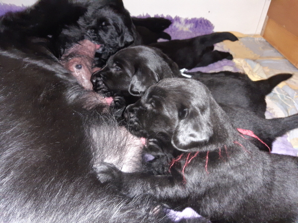Ivy war zunächst noch etwas benommen und konnte mit den schwarzen, quiekenden Knäuel nichts anfangen. Schließlich durften sie aber ihre erste Milch bekommen. Natürlich war die erste Nacht etwas unruhig. Alle mussten sich noch in ihren Rollen einfinden.
