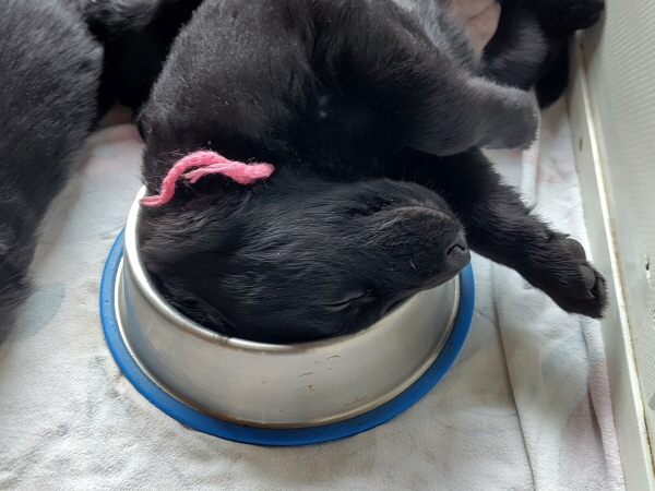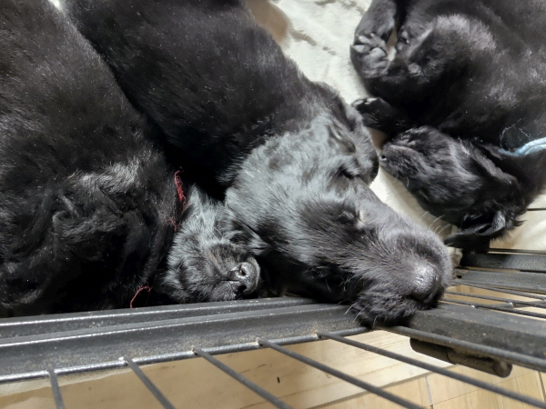Ein kleines Drama gab’s: Einer der Kleinen hatte starke Schmerzen an einem Vorderlauf und weinte ordentlich. Nach Besuch bei der Tierärztin konnte Entwarnung geben werden, vielleicht hatte Mama mal drauf gelegen. Jedenfalls nichts Wildes und ein Schmerzmittel brachte Linderung. Danach war es auch wieder gut.